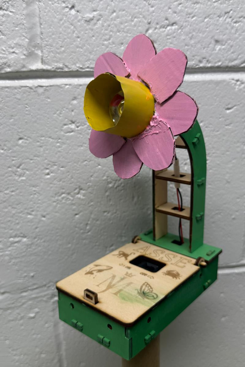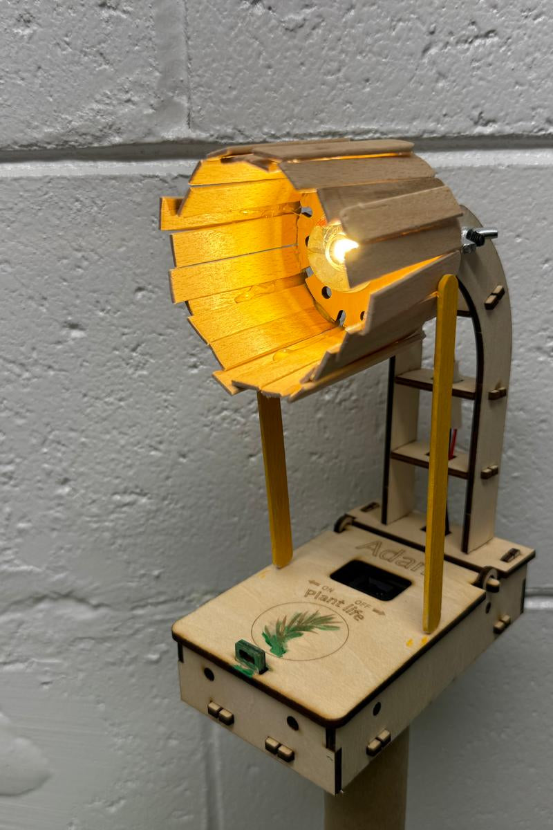 Students construct a functional light with a switch, adjustable arm, and removable battery compartment. Through hands-on exploration, they learn how electrical energy moves through a circuit, how switches work, and how design choices affect function.