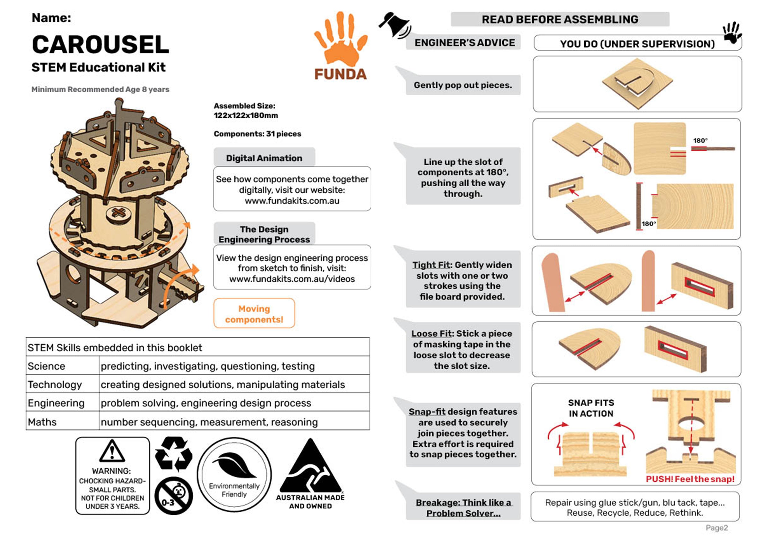 Made from natural, high-quality plywood and assembling without glue or chemicals, the Carousel is safe, durable, and designed for repeated classroom use.